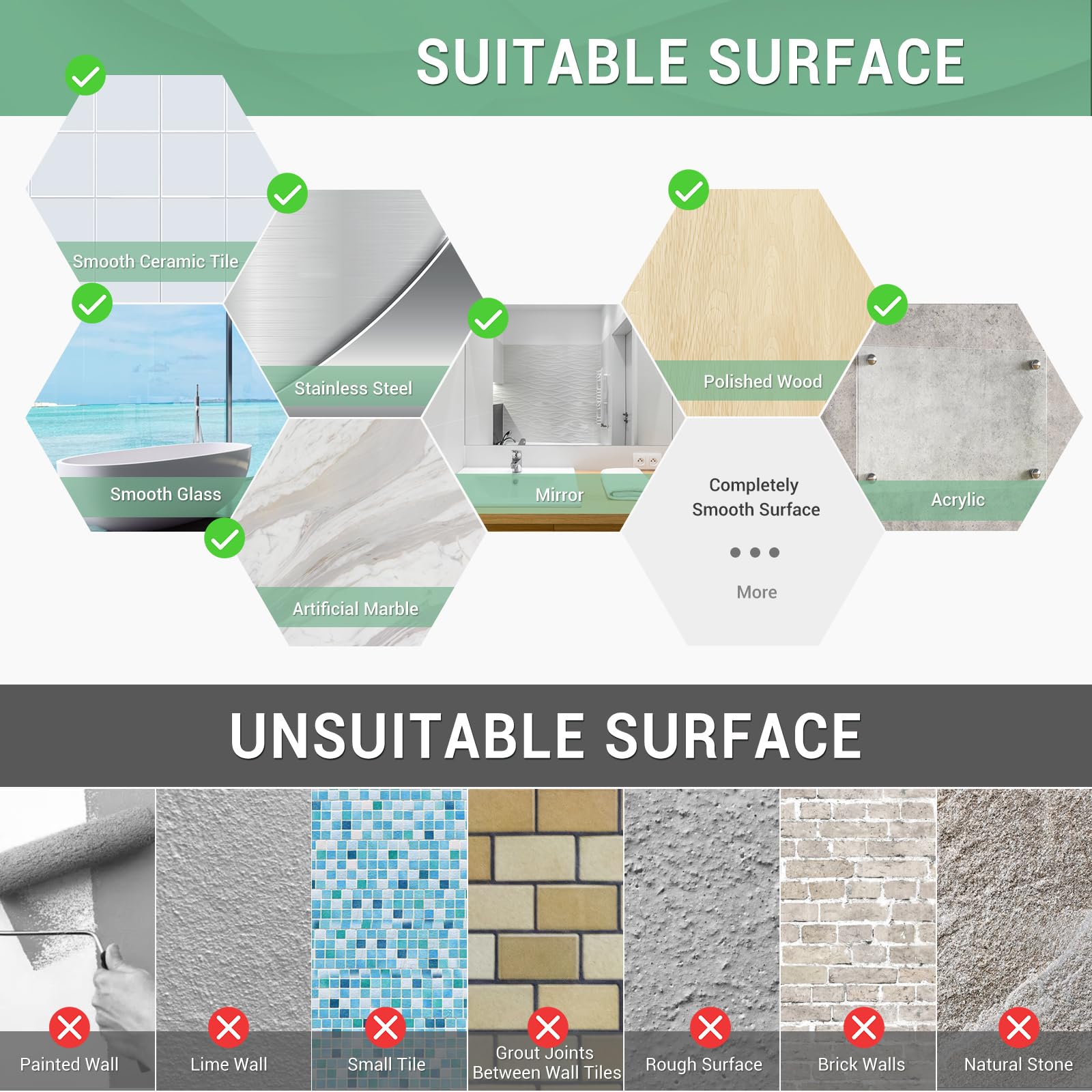 - 【Warm Tip for the Suction Shower Basket】Please CLEAN AND DRY THE SURFACE before installation. The suction cups work well on SMOOTH AND NON-POROUS surface such as glass, mirror, tile, marble and stainless steel. CANNOT be used on oiled surface, unfinished marble, rough surface or over grout line lime wall, emulsion varnish, wall paper, non-painted wood, mosaic, old ceramic tiles, cement walls and other breathable materials
