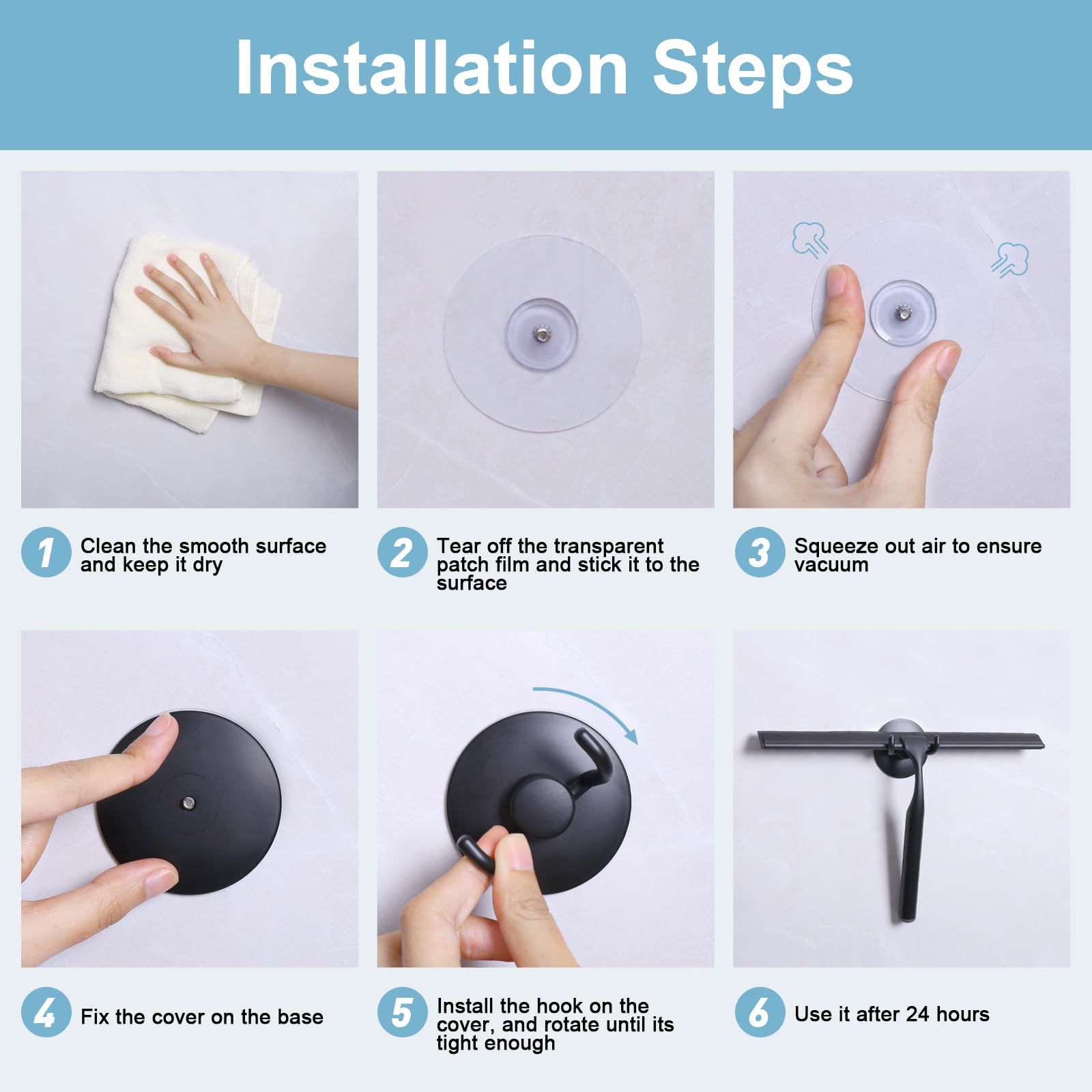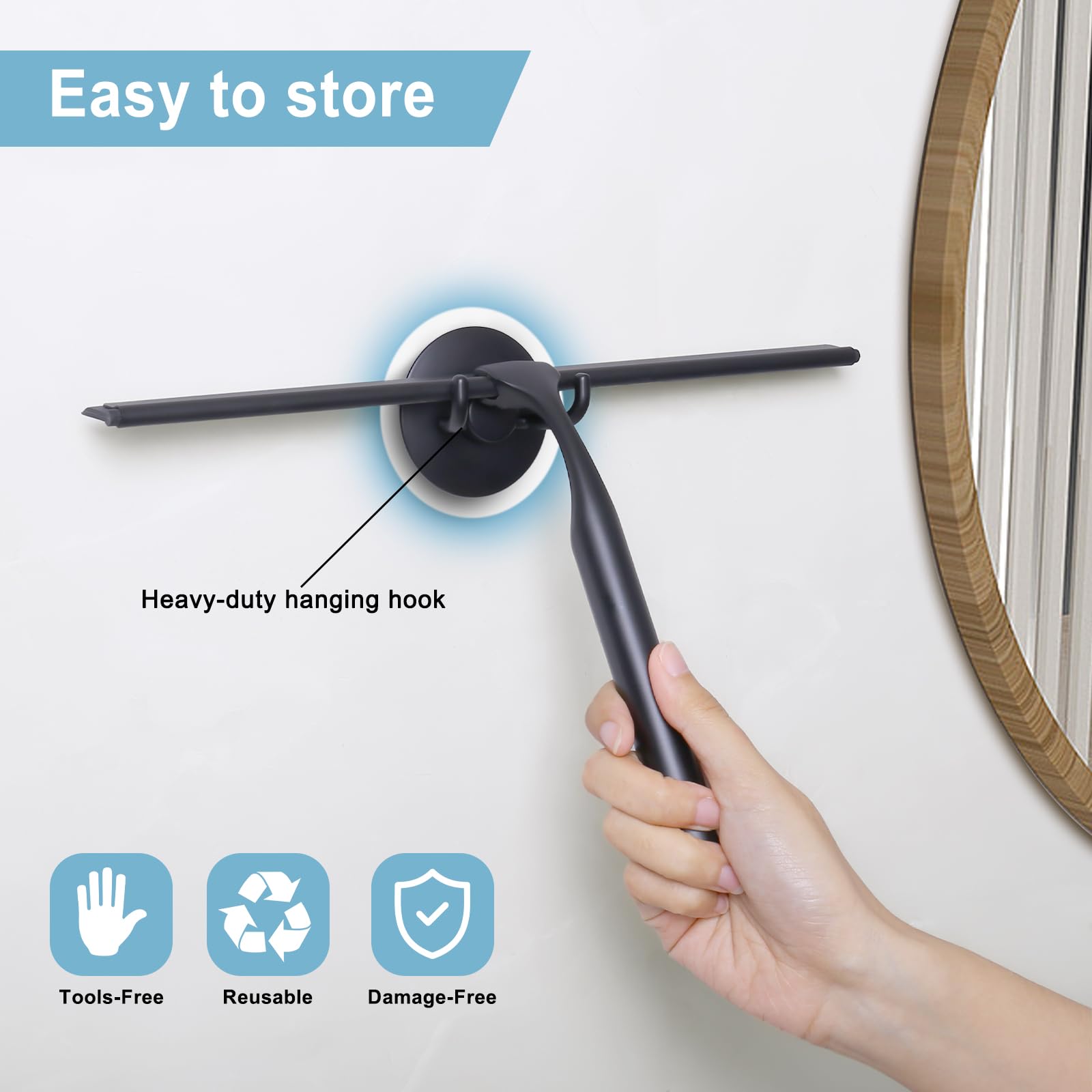 - 【Super Strong Store Hook】 No drilling or gluing required! The shower squeegee for shower doors come with a powerful adhesive hook holder. You can easily attach the adhesive hook to any smooth surfaces such as panes, tiles, shower walls, shower glass surfaces, doors, and cubicles, which allow the stainless steel squeegee can be stored almost anywhere for quick access and easy use.