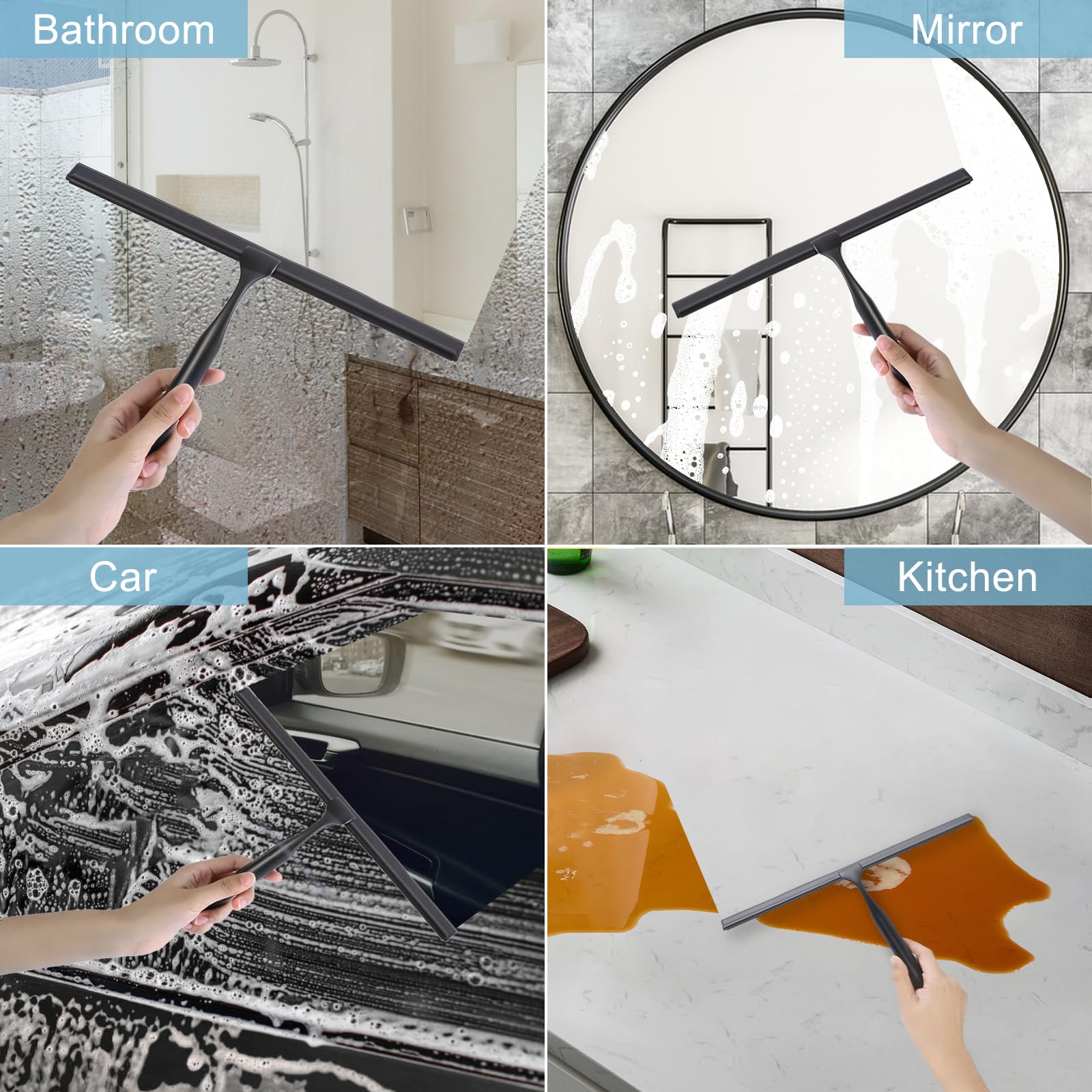 - 【Sturdy & Durable】 Made of 100% rust-resistant stainless steel and premium silicon blade. Our shower glass cleaner is rust-free and durable ensure long lasting use for your daily household cleaning activities. A must have window squeegee for window cleaning, bathroom squeegee for shower glass doors.